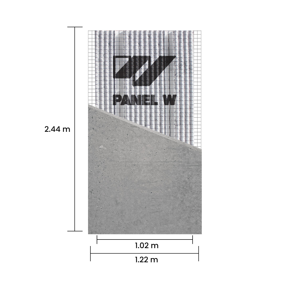 Panel W estructural de 7.6 cm (3 pulgadas) con 2 nervaduras y malla autoensamble en los costados.
